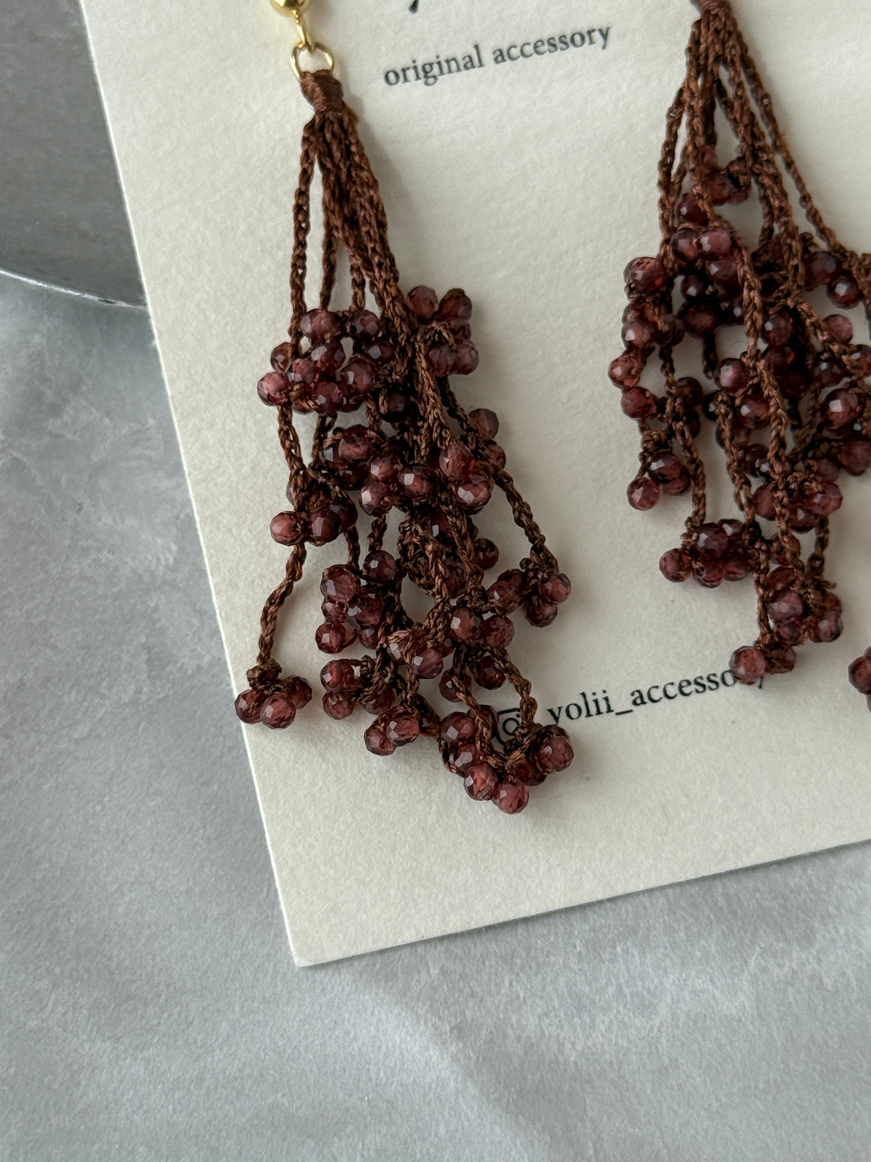 小さな天然石を編み込んで タッセル状にお仕立てした耳飾り