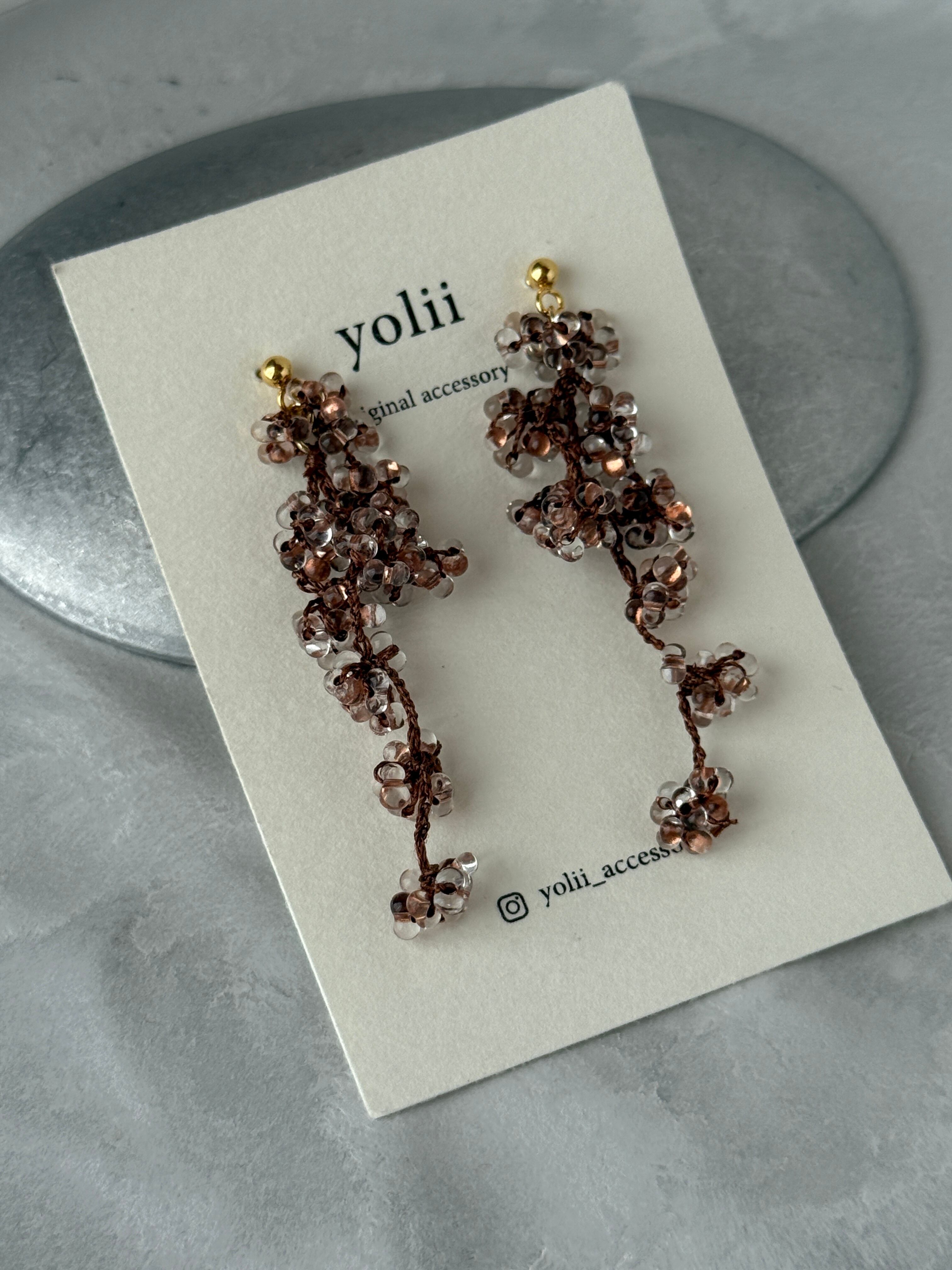 ・クリアビーズの中心部分に明るめブラウンの着色された透明感のあるビーズを採用