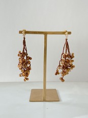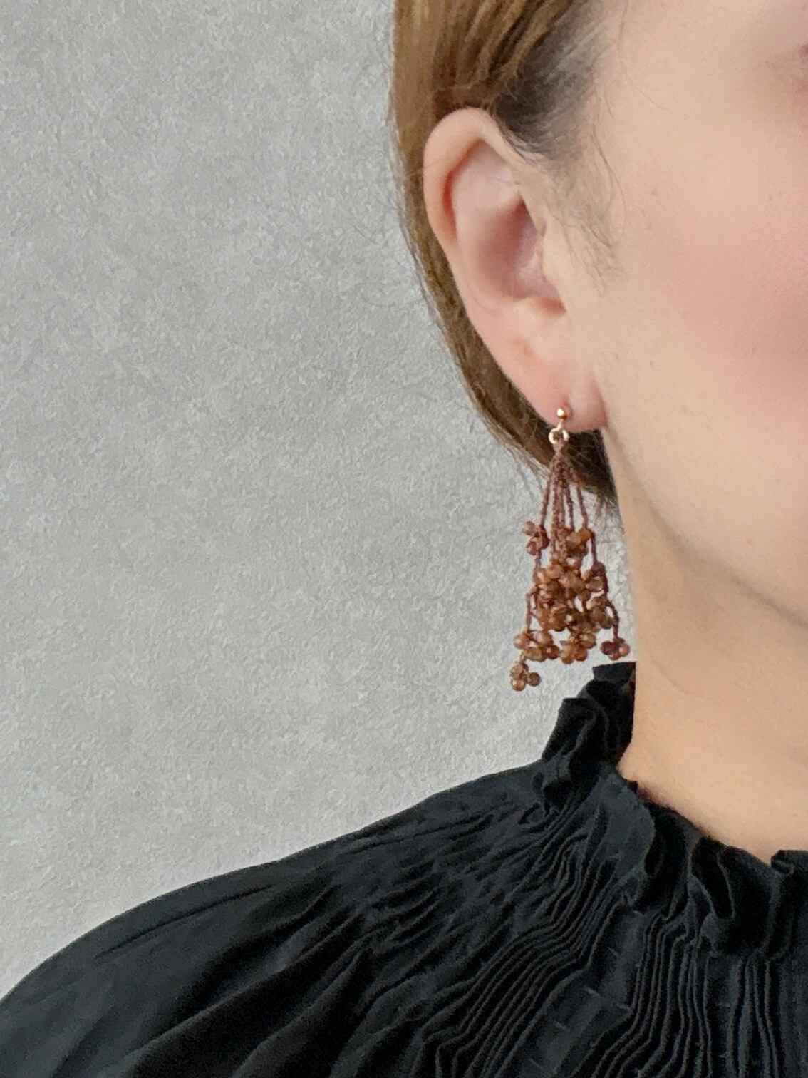 小さな天然石を編み込んで タッセル状にお仕立てした耳飾り