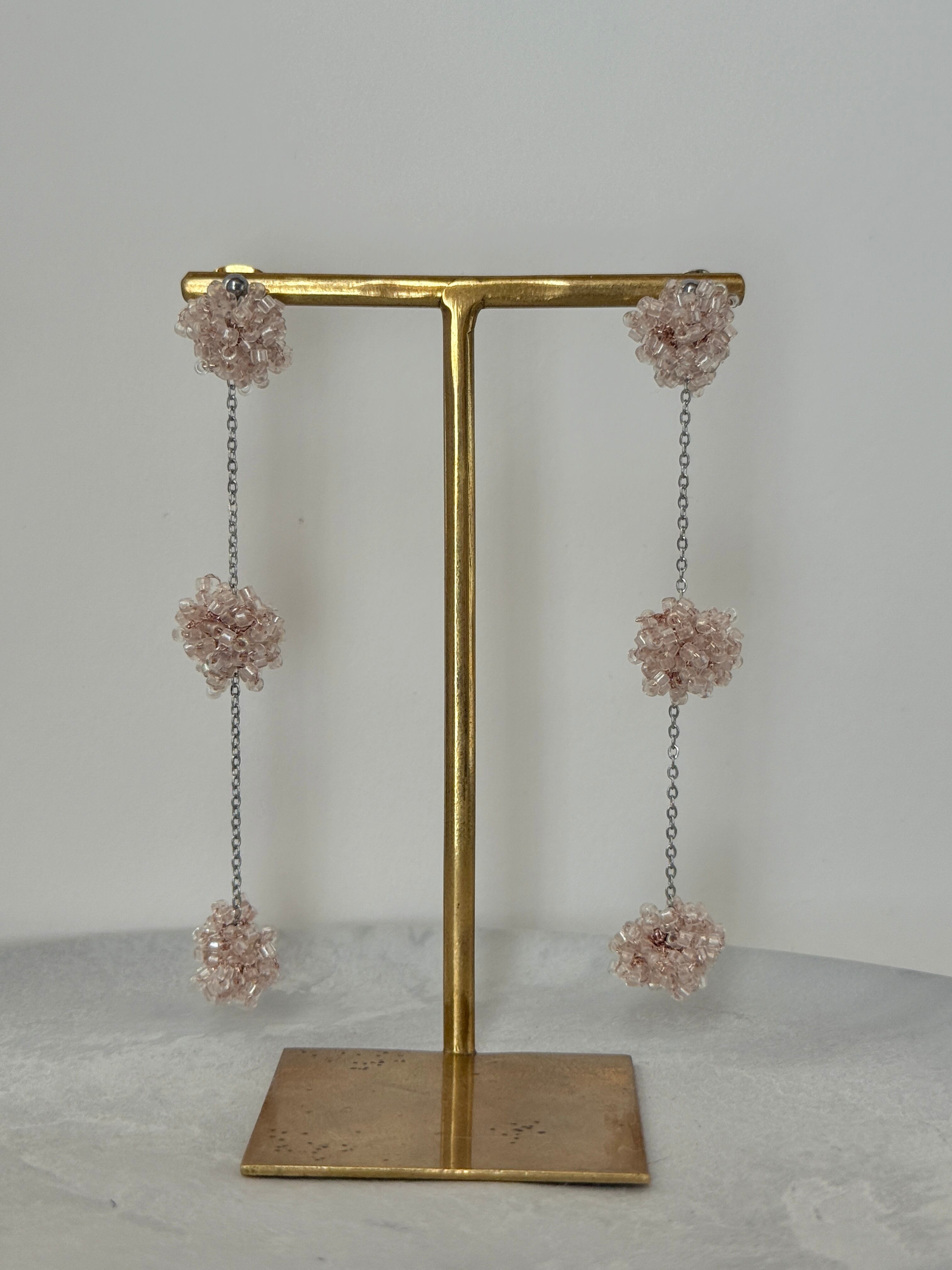 小さなビーズを極小のビーズボールに仕立てチェーンで繋いだ