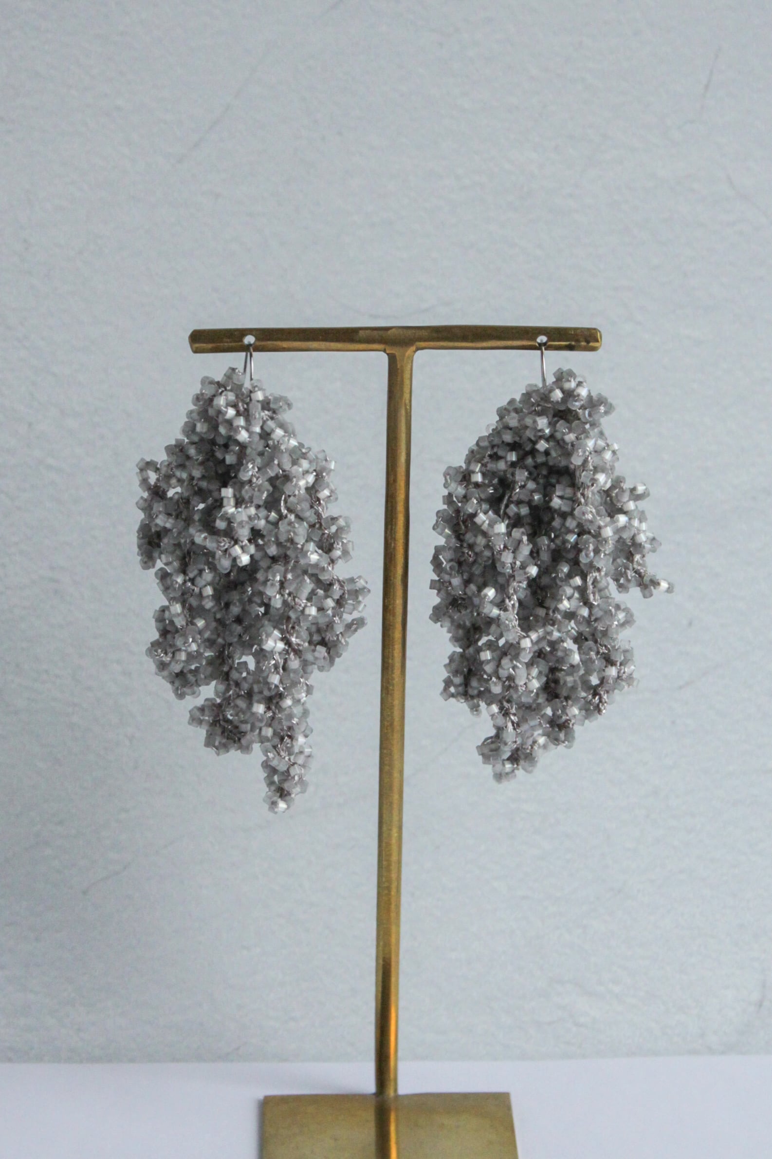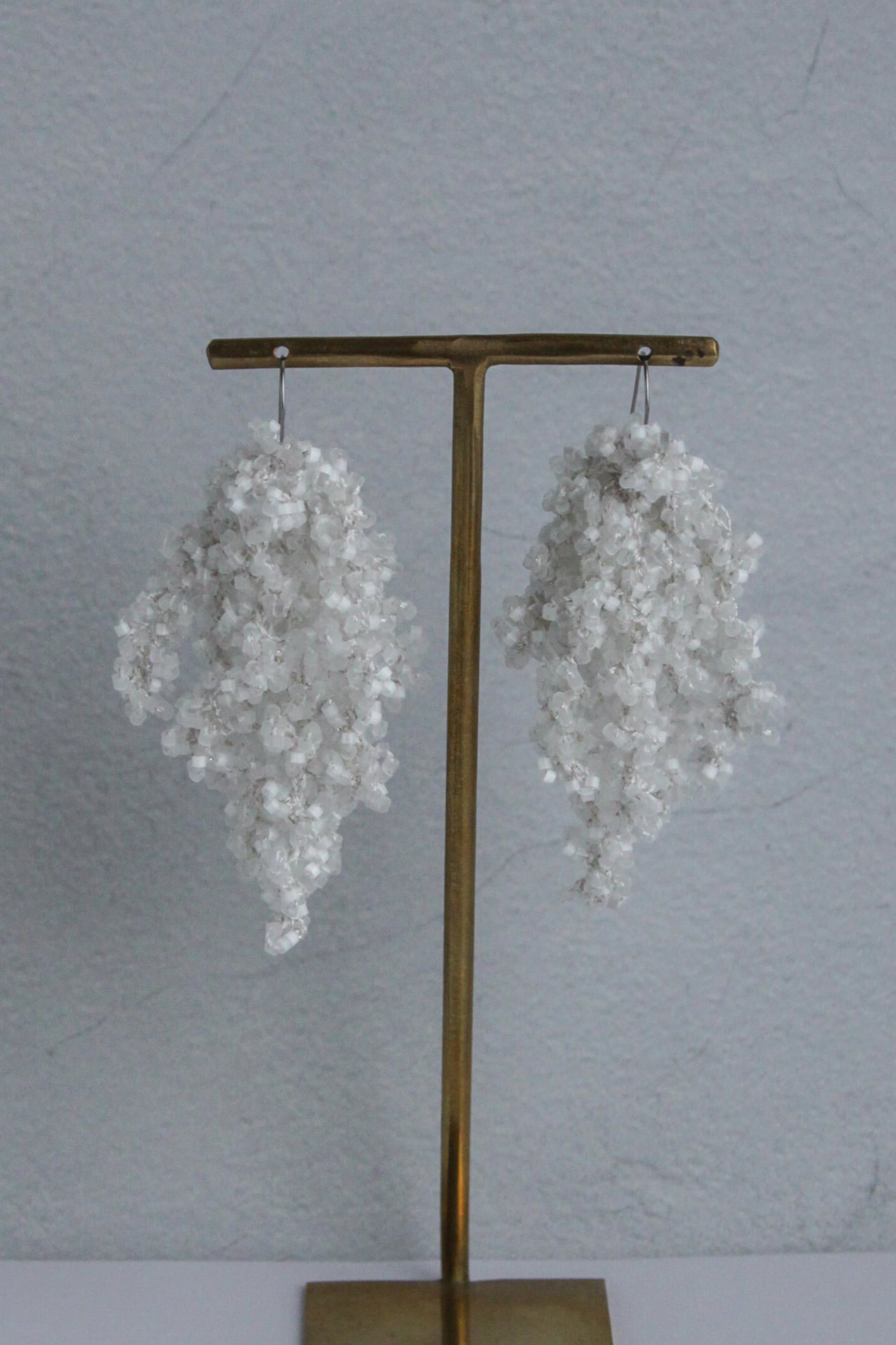 雪のように真っ白なビーズをシルク糸とラメ糸の2本で編み上げています