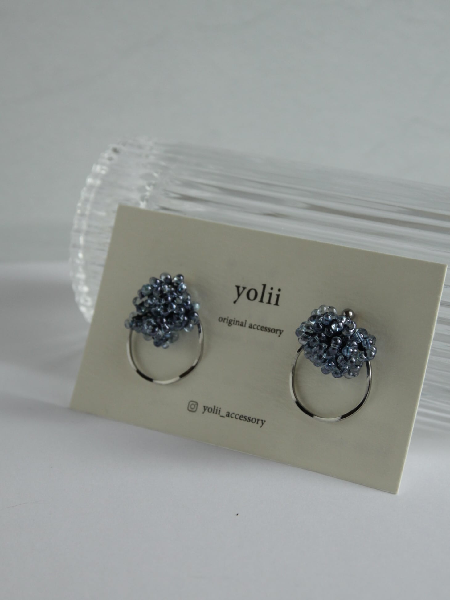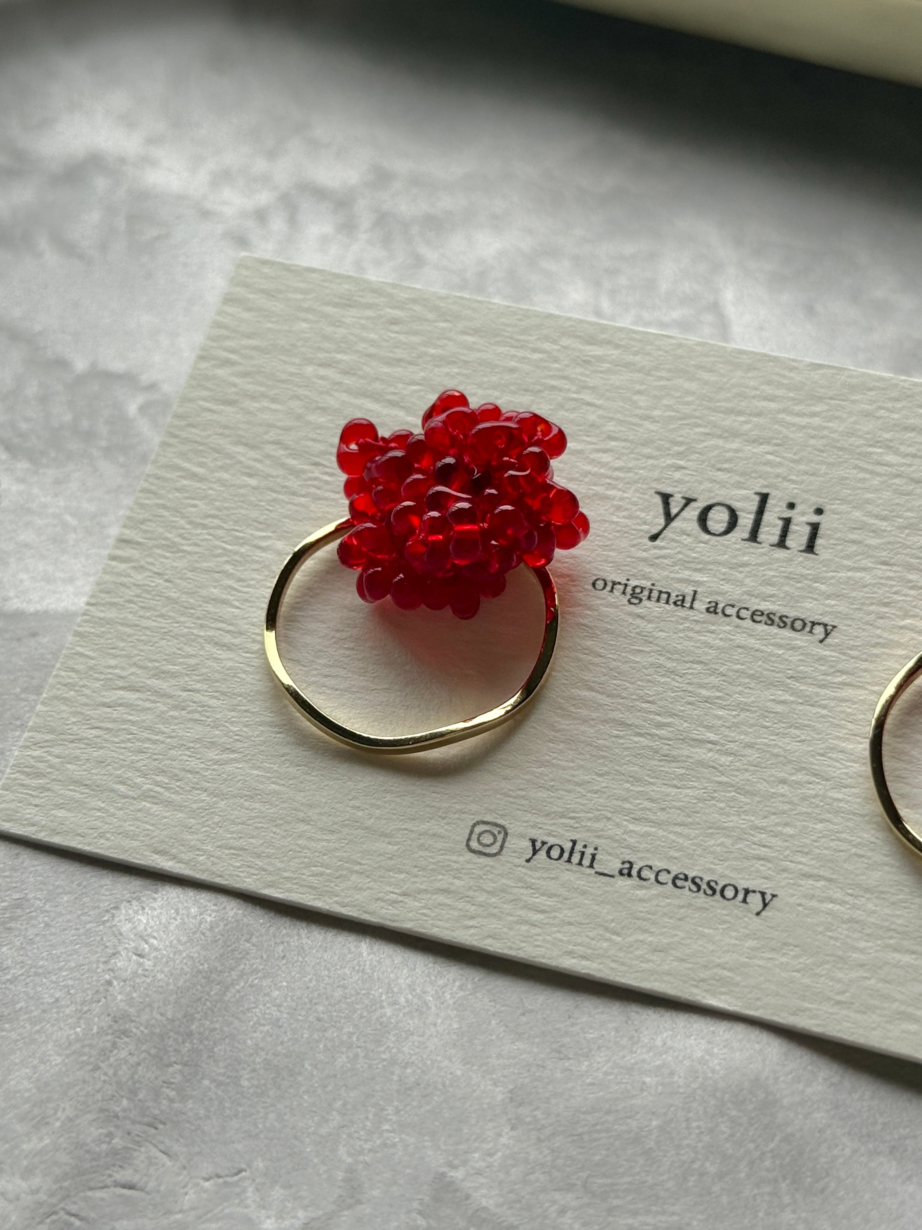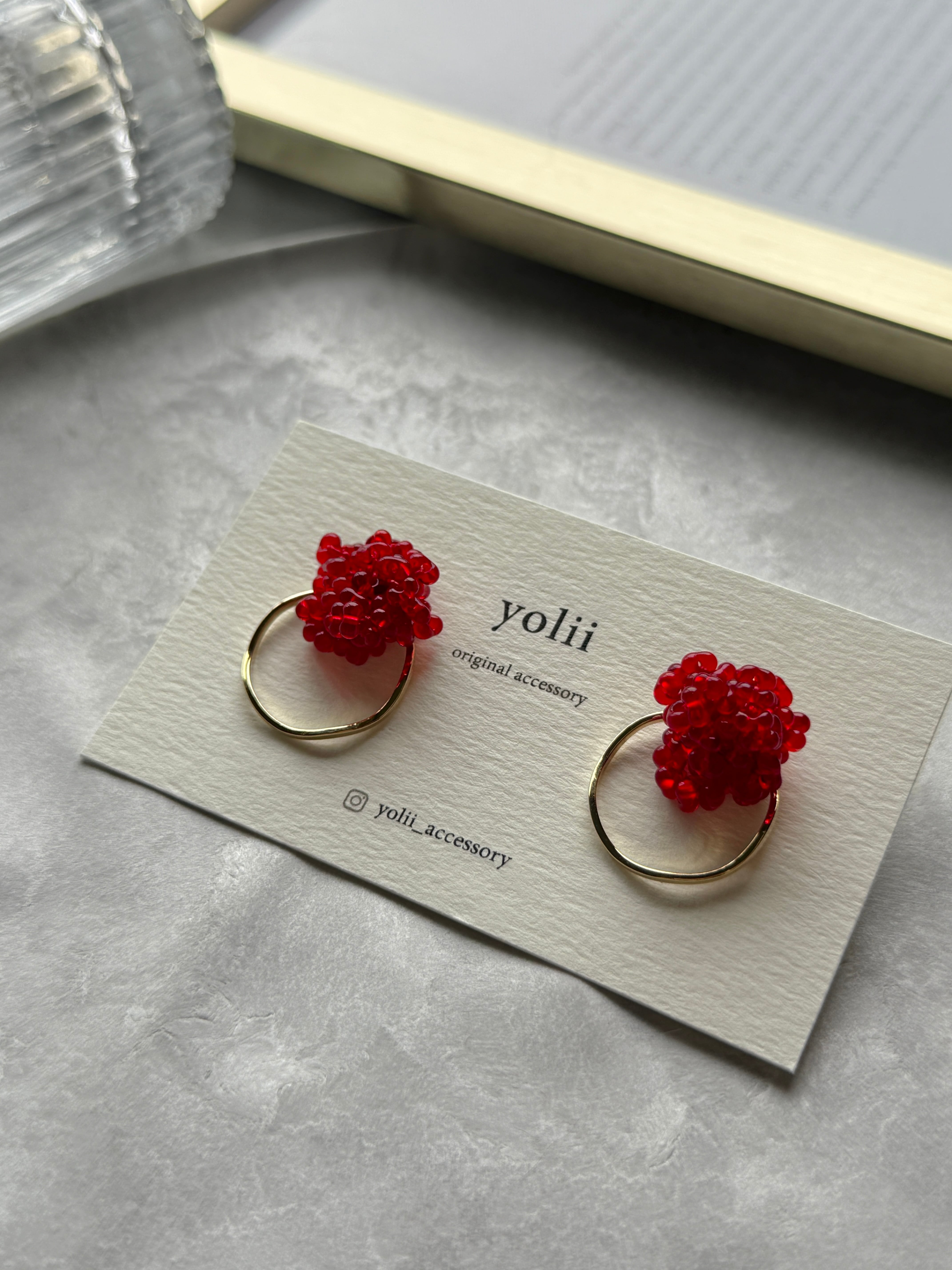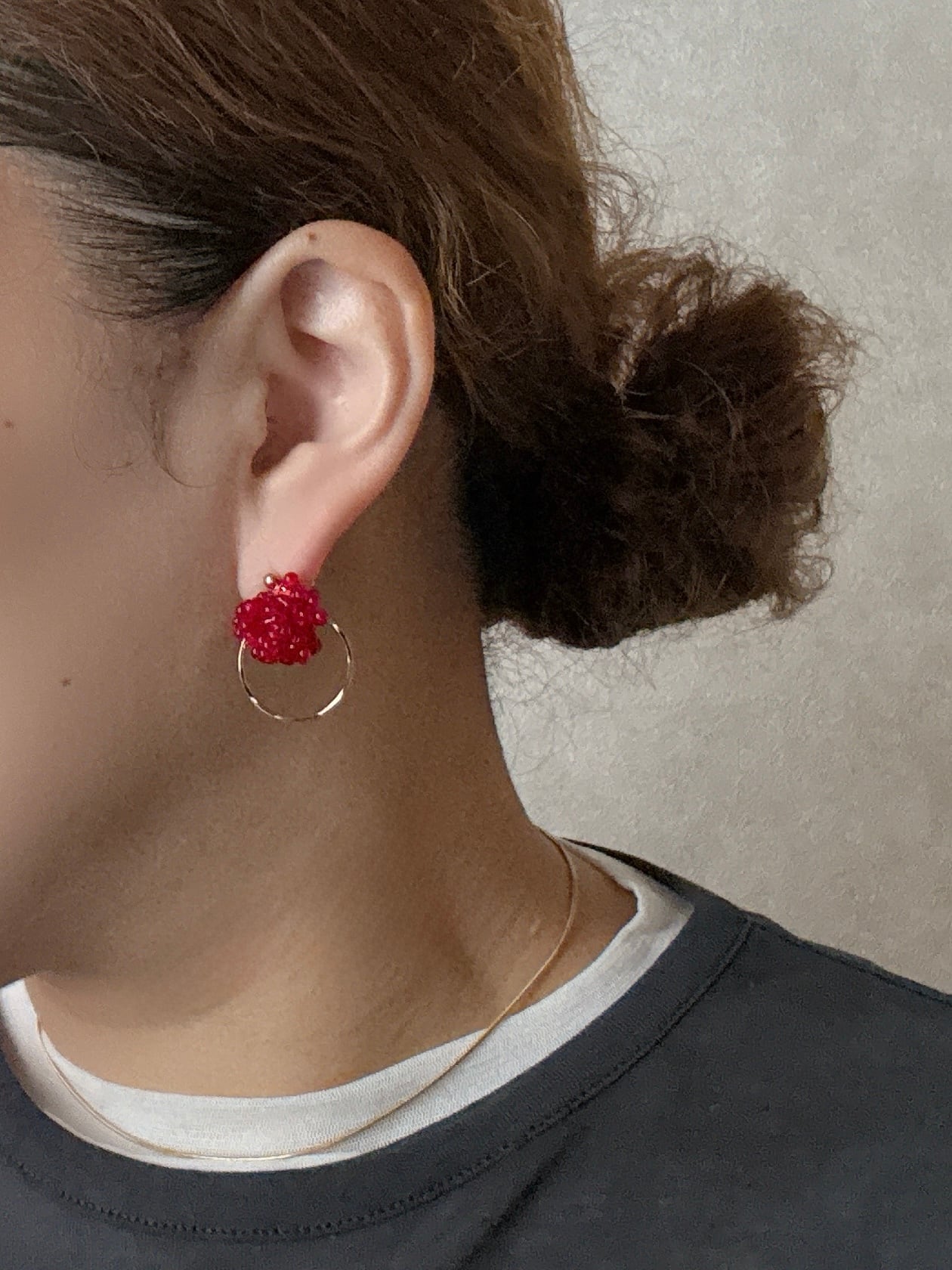 ・ファルファーレビーズをボール状に編み込み曲線美の美しいフープと合わせたお品です
