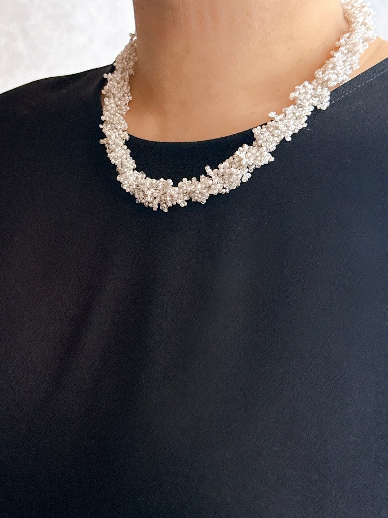 ・小さなビーズを極細糸で編み上げふんわり仕上げたネックレス