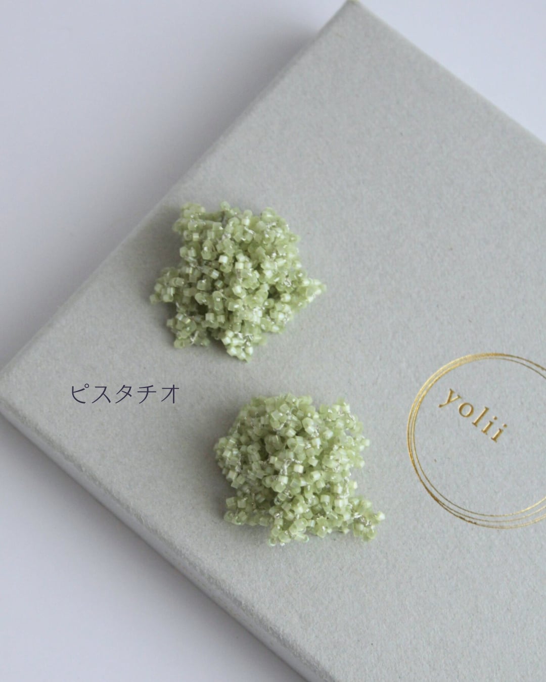 小さなビーズをシルク糸にあらかじめ通し、レース針で編む「ビーズクロッシェ」という技法でお作りしています