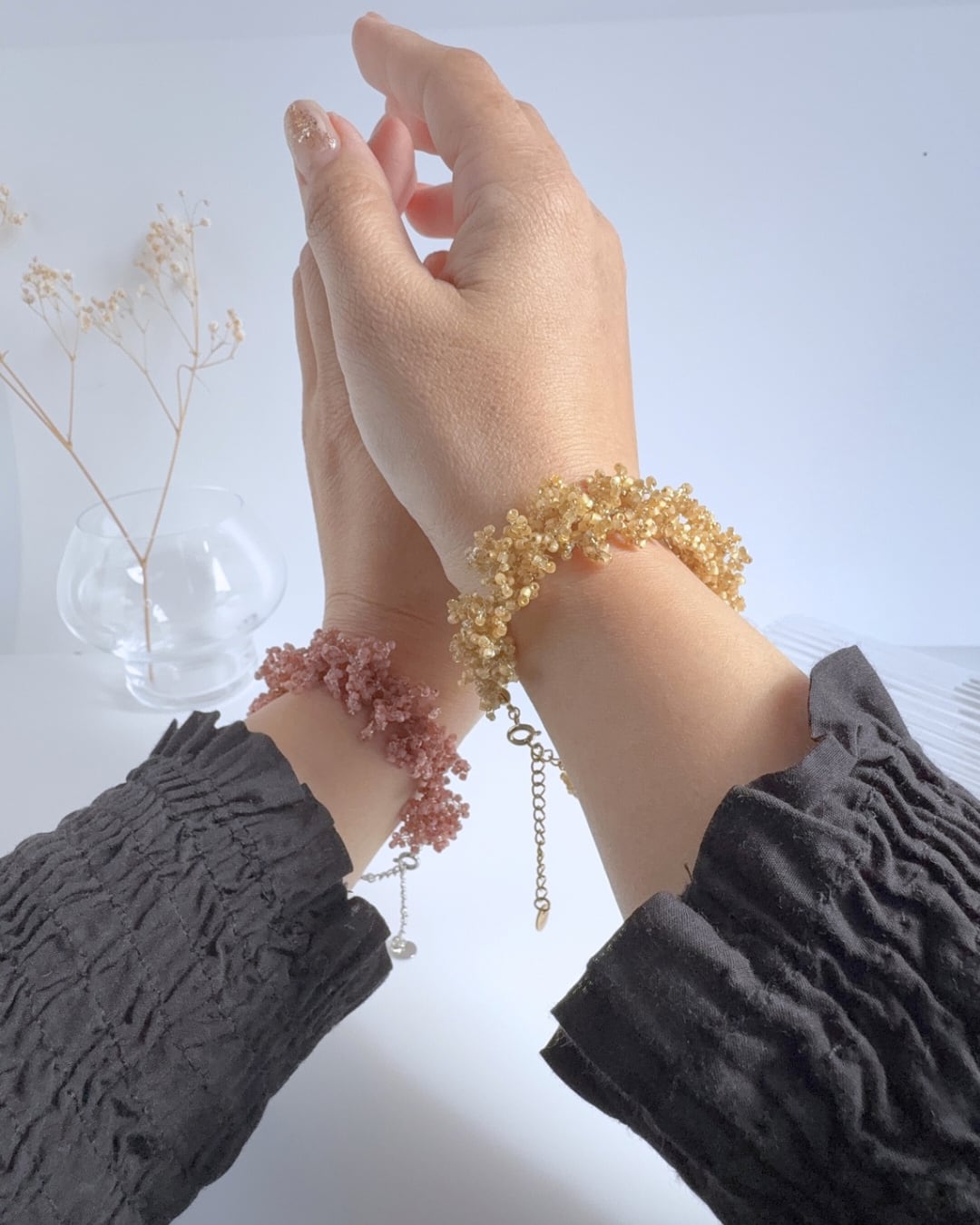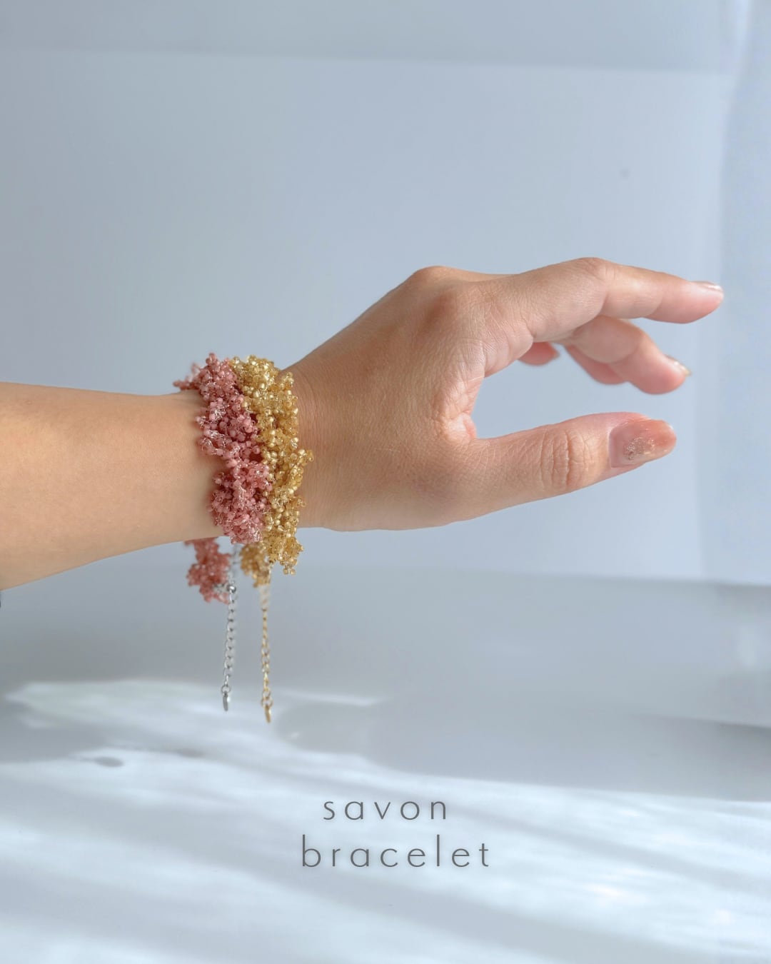 ・小さなビーズを極細糸で編み上げた【savon】シリーズの手元を華やかに演出してくれる